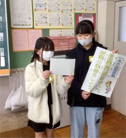 ちょうど、生活委員会の6年生が、1月の生活目標のPRに来ていました!