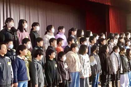 朝会のあと、5、6年生が学年合唱を披露しました。