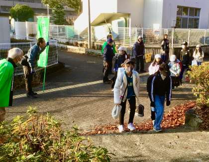 今朝は、民生委員さん方による愛の一声あいさつ運動が行われています。