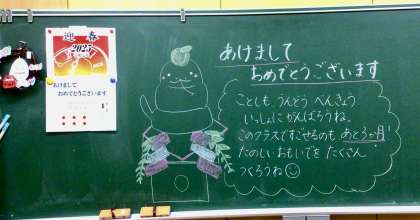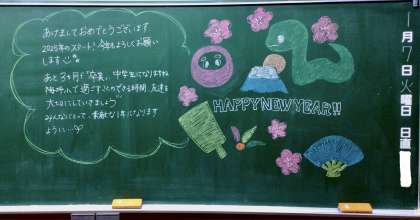 1月7日(火)の梅坪小(3)黒板メッセージ