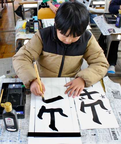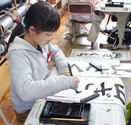 また、筆の入り、止め、はね、はらいを意識して、ゆっくり書く姿が印象的でした。