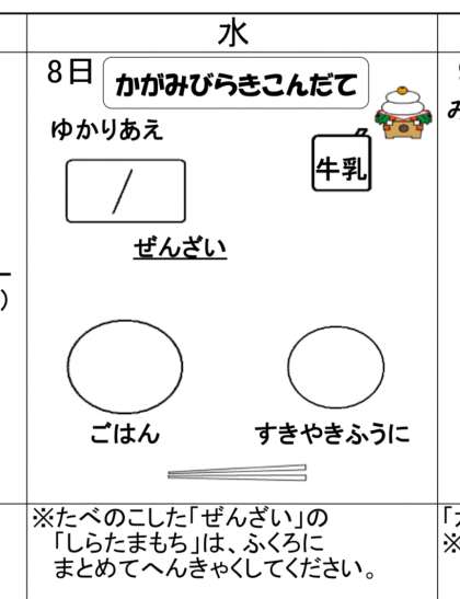 1月8日(水)の梅坪小(3)鏡開きこんだて