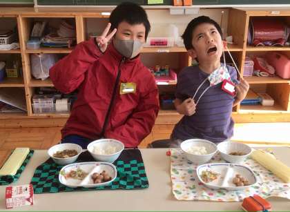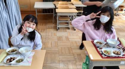 1月8日(水)の梅坪小(4)特別支援学級の給食風景