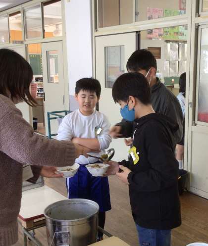 1月8日(水)の梅坪小(7)5年生の給食風景