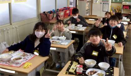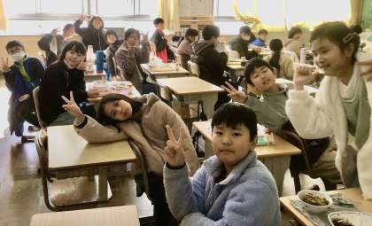 1月8日(水)の梅坪小(9)5年生の給食風景