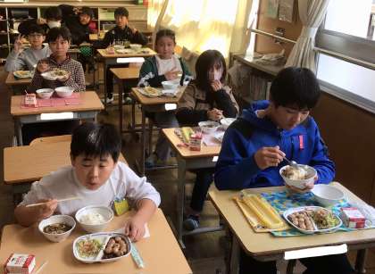 1月8日(水)の梅坪小(10)5年生の給食風景