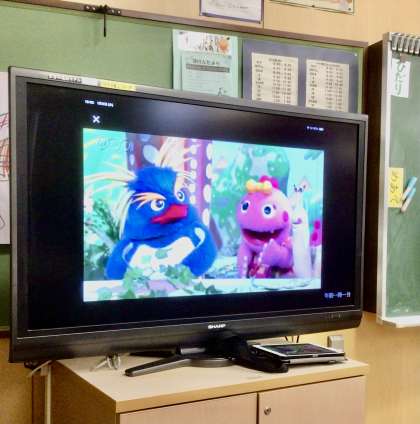 授業の終盤では、タブレット端末からの英語の動画を視聴していました!