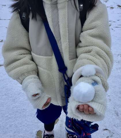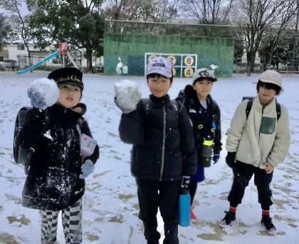 子どもたちは、今年度初めての雪に、嬉しそうです。