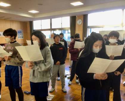 1月10日(金)の梅坪小(12)6年生 学年合唱の練習