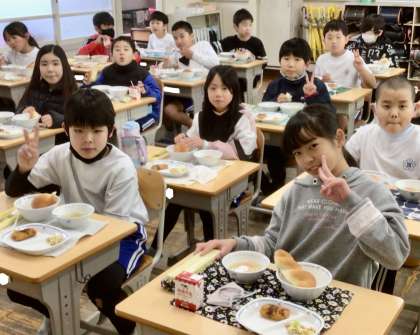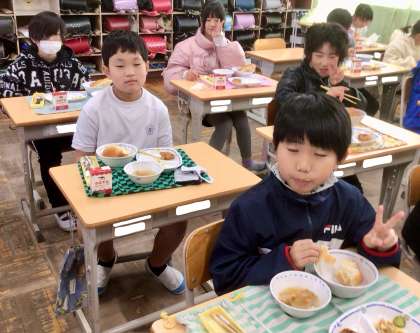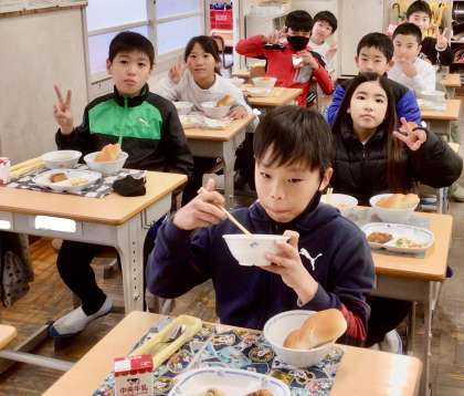 1月16日(木)の梅坪小(7)4年生の給食風景