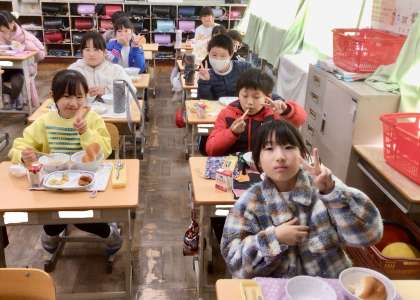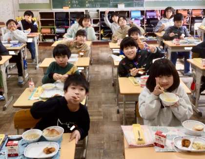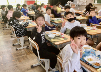 1月16日(木)の梅坪小(8)4年生の給食風景
