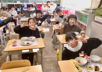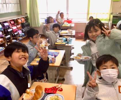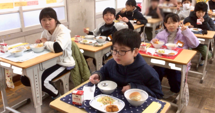 1月16日(木)の梅坪小(9)4年生の給食風景