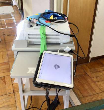 教師用タブレットから音源を取ることができ、音量も十分にあるので便利です。