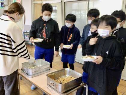 1月20日(月)の梅坪小(10)6年生の給食風景
