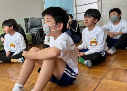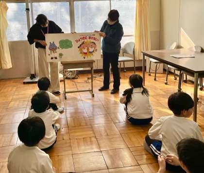 身体測定の後には、2人の保健の先生が、大型絵本を使って読み聞かせをしてくれました。