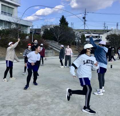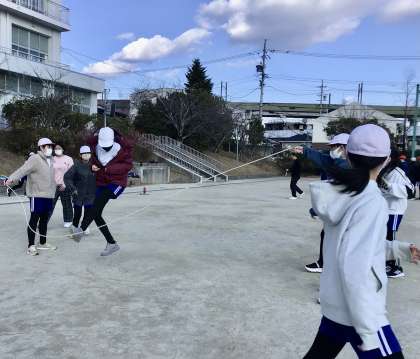 1月22日(水)の梅坪小(15)6年生 体育 大なわとび
