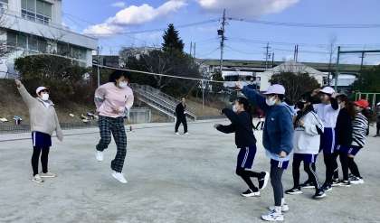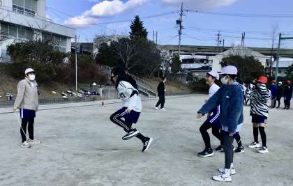 1月22日(水)の梅坪小(16)6年生 体育 大なわとび