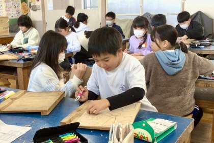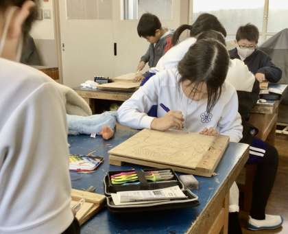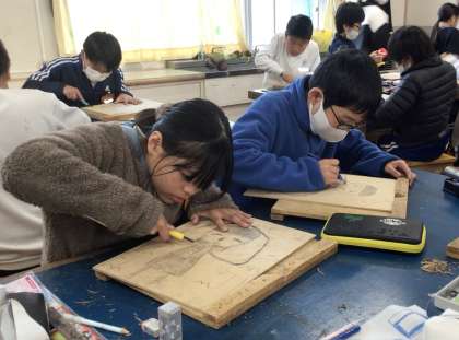1月22日(水)の梅坪小(19)4年生 図工 版画