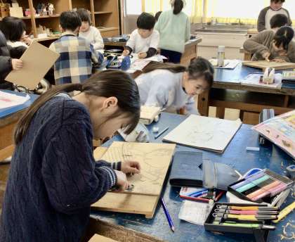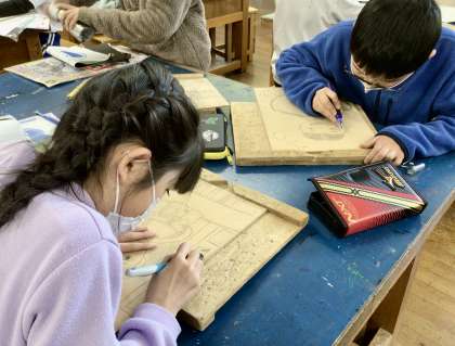 彫刻刀を使い分け、けがをしないよう安全に留意して彫り進めていました!^_^