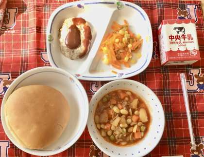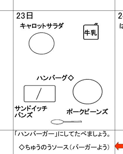 1月23日(木)の梅坪小(7)ハンバーガー! 公開日 2025/01/23 更新日 2025/01/23 お知らせ 今日は みんな大好き ハンバーガーです! 定番のポークビーンズにキャロットサラダが引き立てます。 がぶり…といただきましょう!