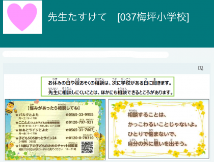 皆さんの学習用タブレットのフォームス「先生たすけて」や梅小「こまったことアンケート」を使って相談することもできます。