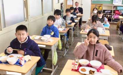 1月27日(月)の梅坪小(8)5年生の給食風景