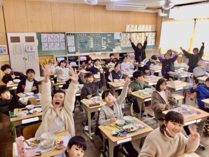 1月27日(月)の梅坪小(11)5年生の給食風景 公開日 2025/01/27 更新日 2025/01/28 各学年から とても元気のよいリアクションが返ってきます! 2枚目からは、3組さんです♪ みんないい表情で食べていました♪^^