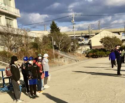 冷たい風が吹く中、今日も静かに集まり 定時に下校しました!