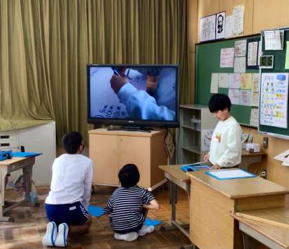 できるようになった なわ跳びでは、事前にタブレットで撮影した動画を見てもらいました。
