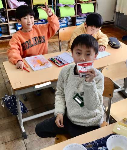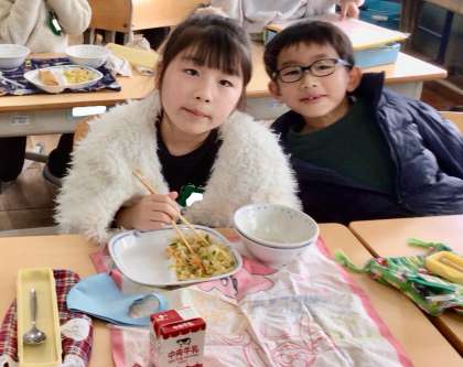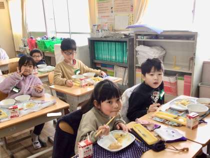 1月29日(水)の梅坪小(11)1年生の給食風景