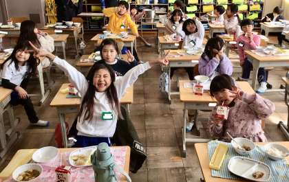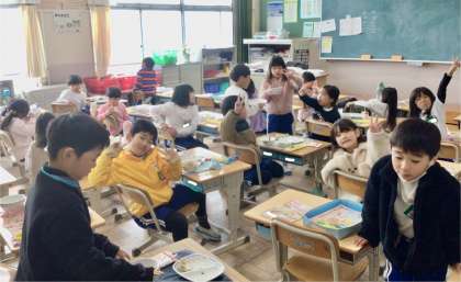 1月29日(水)の梅坪小(13)1年生の給食風景
