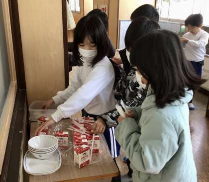 1月30日(木)の梅坪小(9)2年生の給食風景