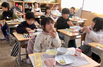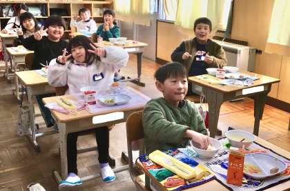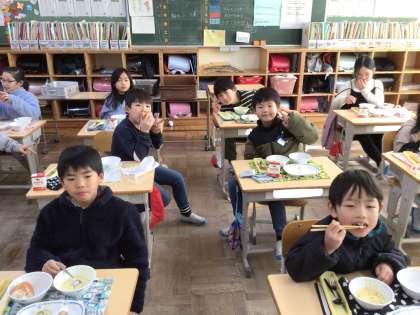 1月30日(木)の梅坪小(11)2年生の給食風景