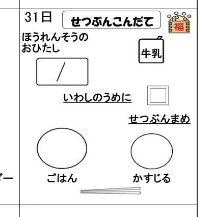 1月31日(金)の梅坪小(9)節分こんだて!