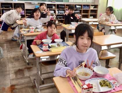 1月31日(金)の梅坪小(11)3年生の給食風景