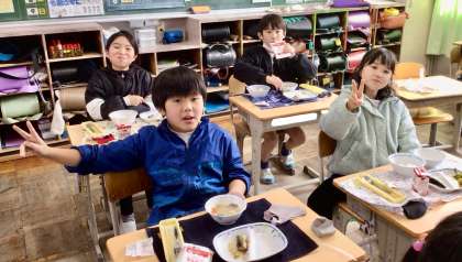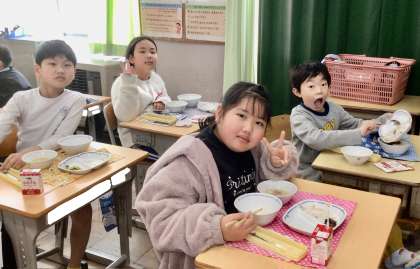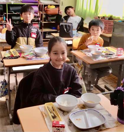 1月31日(金)の梅坪小(15)3年生の給食風景
