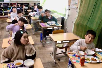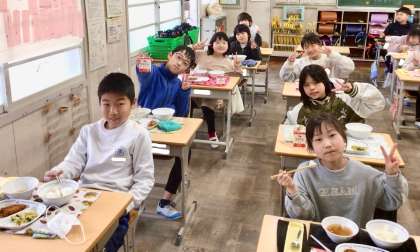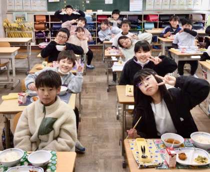 2月3日(月)の梅坪小(10)4年生の給食風景