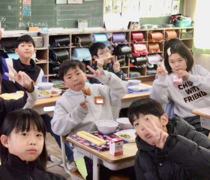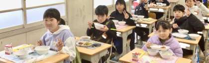 2月3日(月)の梅坪小(12)4年生の給食風景