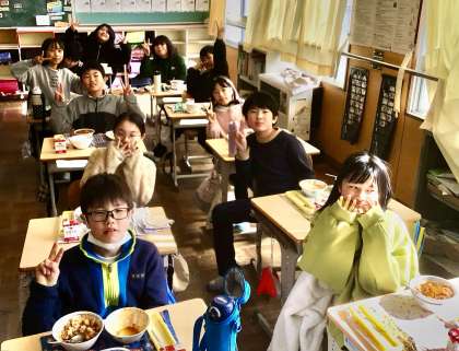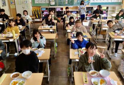 2月4日(火)の梅坪小(10)5年生の給食風景