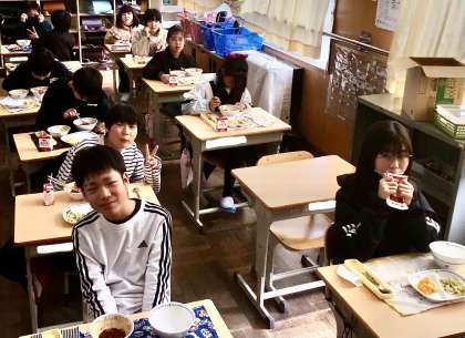 2月4日(火)の梅坪小(11)5年生の給食風景