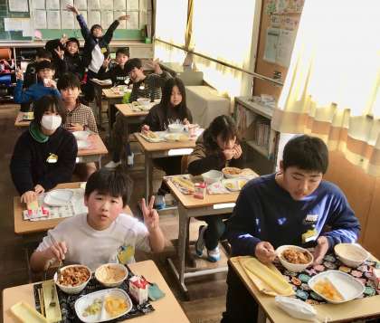 2月4日(火)の梅坪小(13)5年生の給食風景