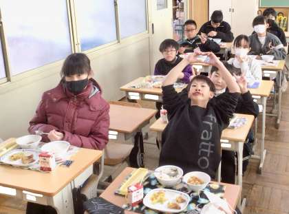 2月5日(水)の梅坪小(9)6年生の給食風景