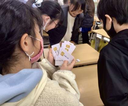 2月5日(水)の梅坪小(14)4年生 カードゲームで楽しく学ぶ!