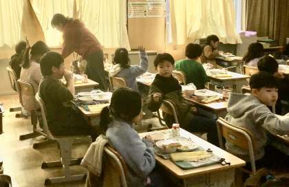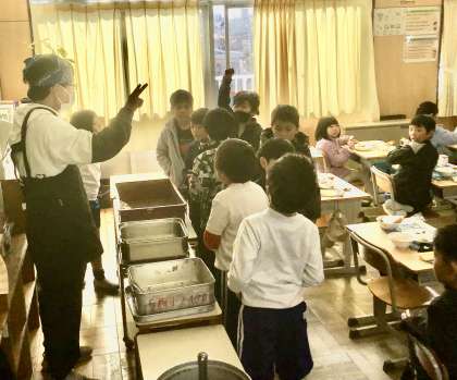2月6日(木)の梅坪小(6)2年生の給食風景