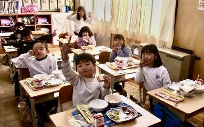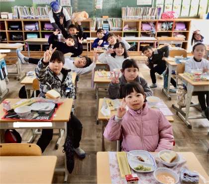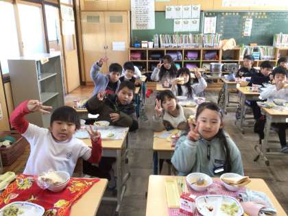 2月6日(木)の梅坪小(9)2年生の給食風景