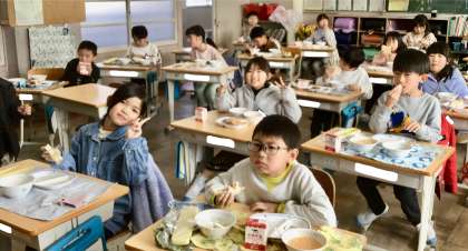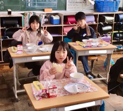 2月6日(木)の梅坪小(10)2年生の給食風景