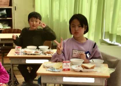2年生の皆さんにいやされる給食訪問でした♪^ ^