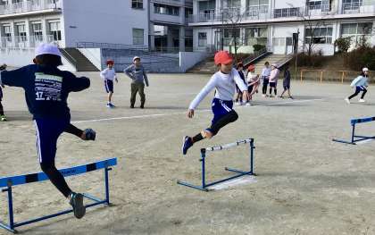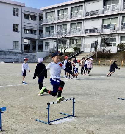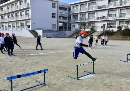 2月6日(木)の梅坪小(12)3年生 体育 小型ハードル走