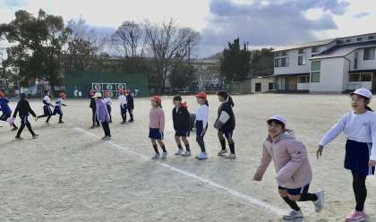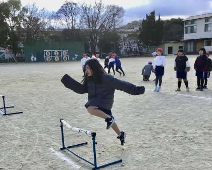 2月6日(木)の梅坪小(14)3年生 体育 ハードル走
