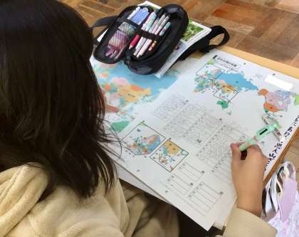 2月10日(月)の梅坪小(5)5年生 特別支援学級 社会 世界の国々